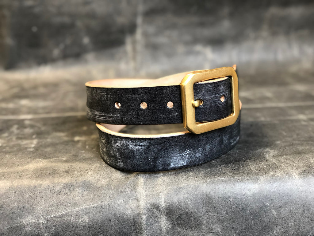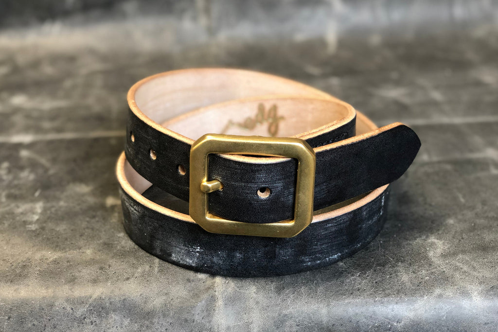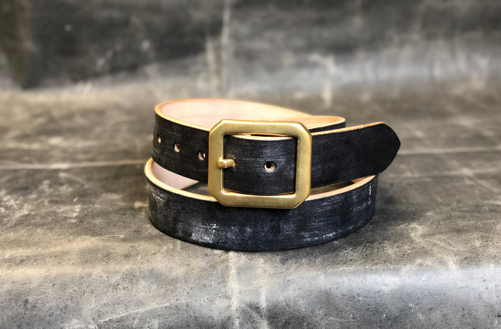 Made from 14 oz. natural oak bark tanned bridle leather from Brittan's only remaining oak bark tannery. The Oak Bark Belt is equipped with the thickest Japanese brass buckle we can get our grubby little hands on.